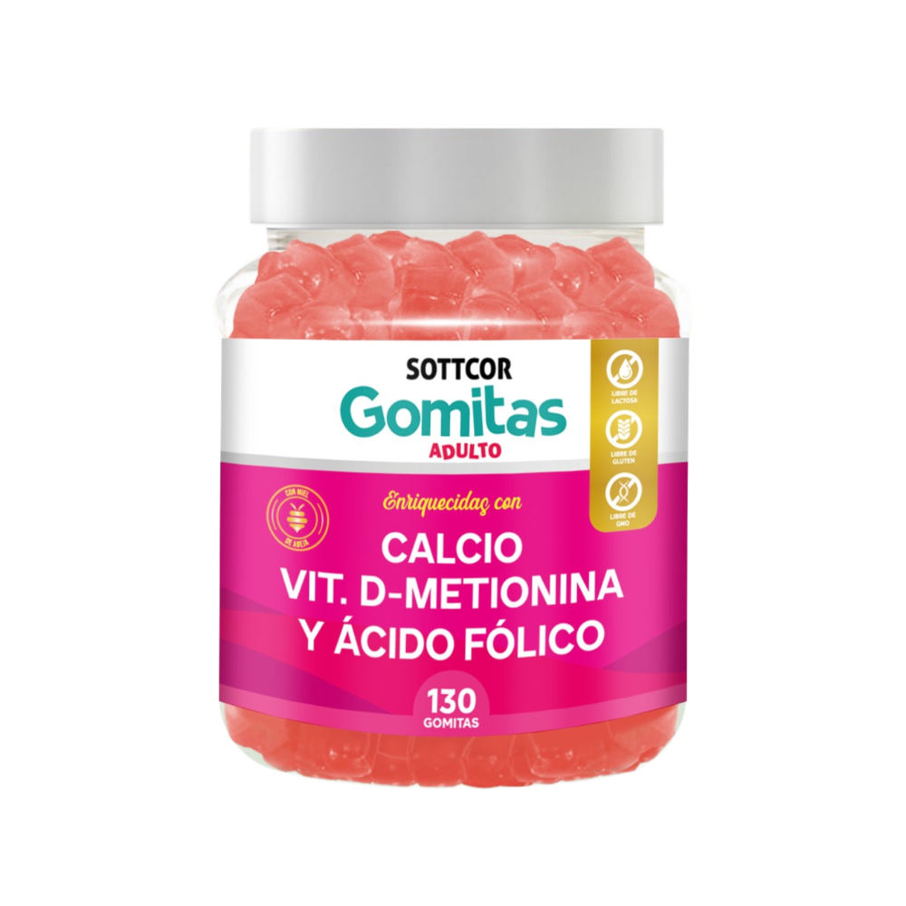 GOMITAS SOTTCOR CALCIO, VITAMINA D – MELATONINA Y ACIDO FOLICO X 130 GOMITAS