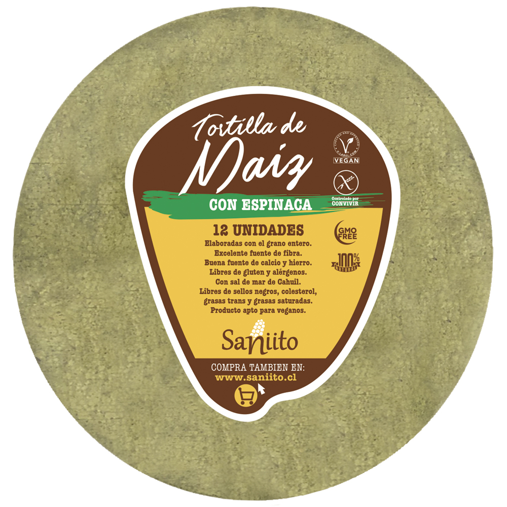 TORTILLA DE MAIZ CON ESPINACA 17CM X 12UND SANIITO