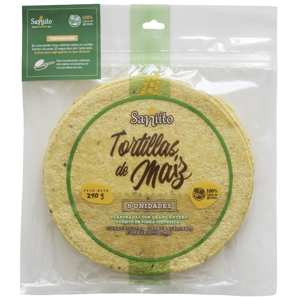 TORTILLA DE MAIZ FAJITA X 17CM 8UND SANIITO